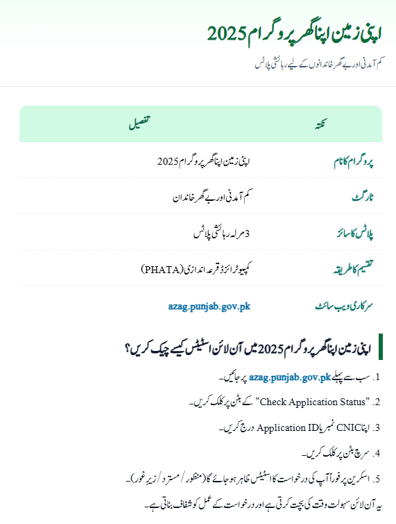 How to Check Apni Zameen Apna Ghar Program 2025 Status Online?