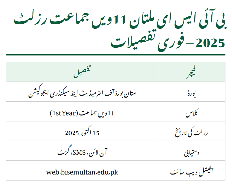 The BISE Multan 11th Class Result 2025 is not just a scorecard—it is a reflection of students’ effort, dedication, and dreams. It sets the direction for future studies, scholarships, and career opportunities. Students must take this result seriously, identify their weak areas, and prepare with full dedication for the next year. Remember, success is not only about marks—it’s about continuous improvement and determination. This result is just one step in your academic journey, and the real success lies in moving forward with confidence and hard work.