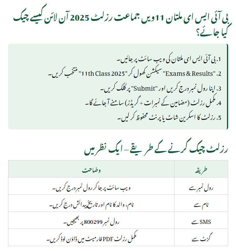 In today’s digital era, checking results online is the fastest and most convenient option. On the result day, students need to visit the official BISE Multan website. From the homepage, go to the “Exams & Results” section, select “11th Class 2025,” and enter your roll number. After clicking submit, your subject-wise marks and grades will appear on the screen. This method not only provides instant access but also gives detailed information about each subject. It is highly recommended that students take a screenshot or print their result to keep a permanent record for future use in admissions and scholarships.