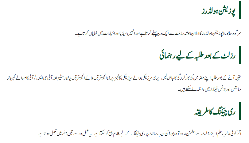 The Sargodha Board announces the toppers or position holders one day before the official result. Usually, three students are declared in each position category. These students receive certificates, awards, and are also highlighted in the media. This motivates other students to work harder for the next academic year.