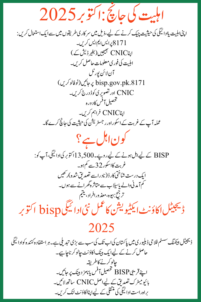 Breaking News: BISP 13500 Payment – New Digital Account Introduced in October 2025
