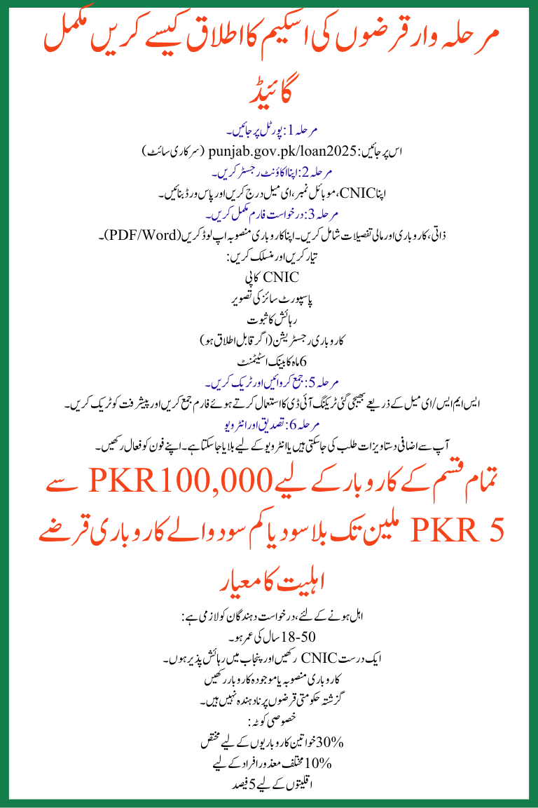 The CM Punjab Loan Scheme 2025 is more than just financial support—it’s a step toward self-reliance and empowerment. With inclusive policies, easy online access, and strong government backing, this is the perfect time to turn your business ideas into reality. Apply early, submit a strong plan, and make the most of this opportunity.