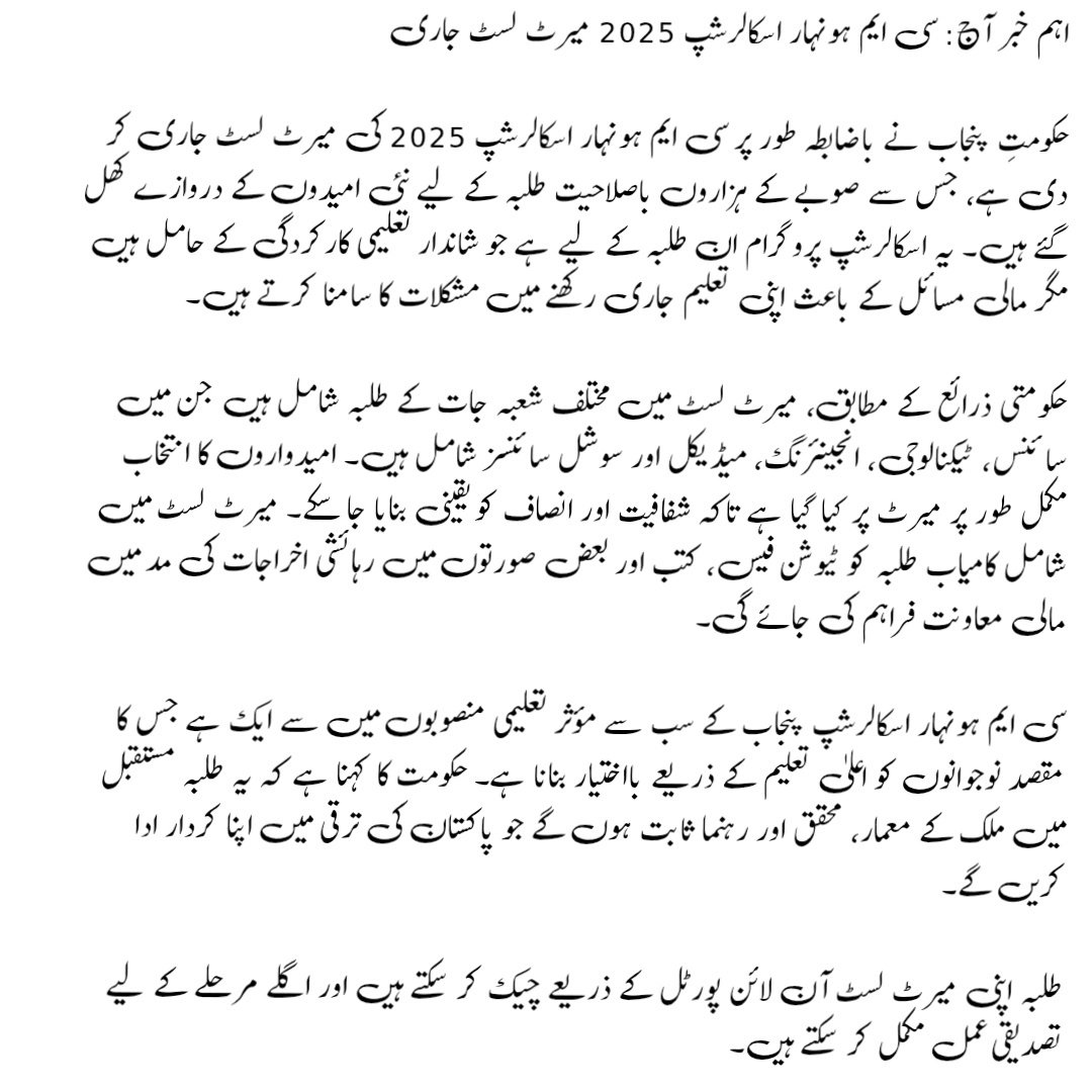 Today Release CM Honhaar Scholarship 2025 Merit List & Apply Online Guide