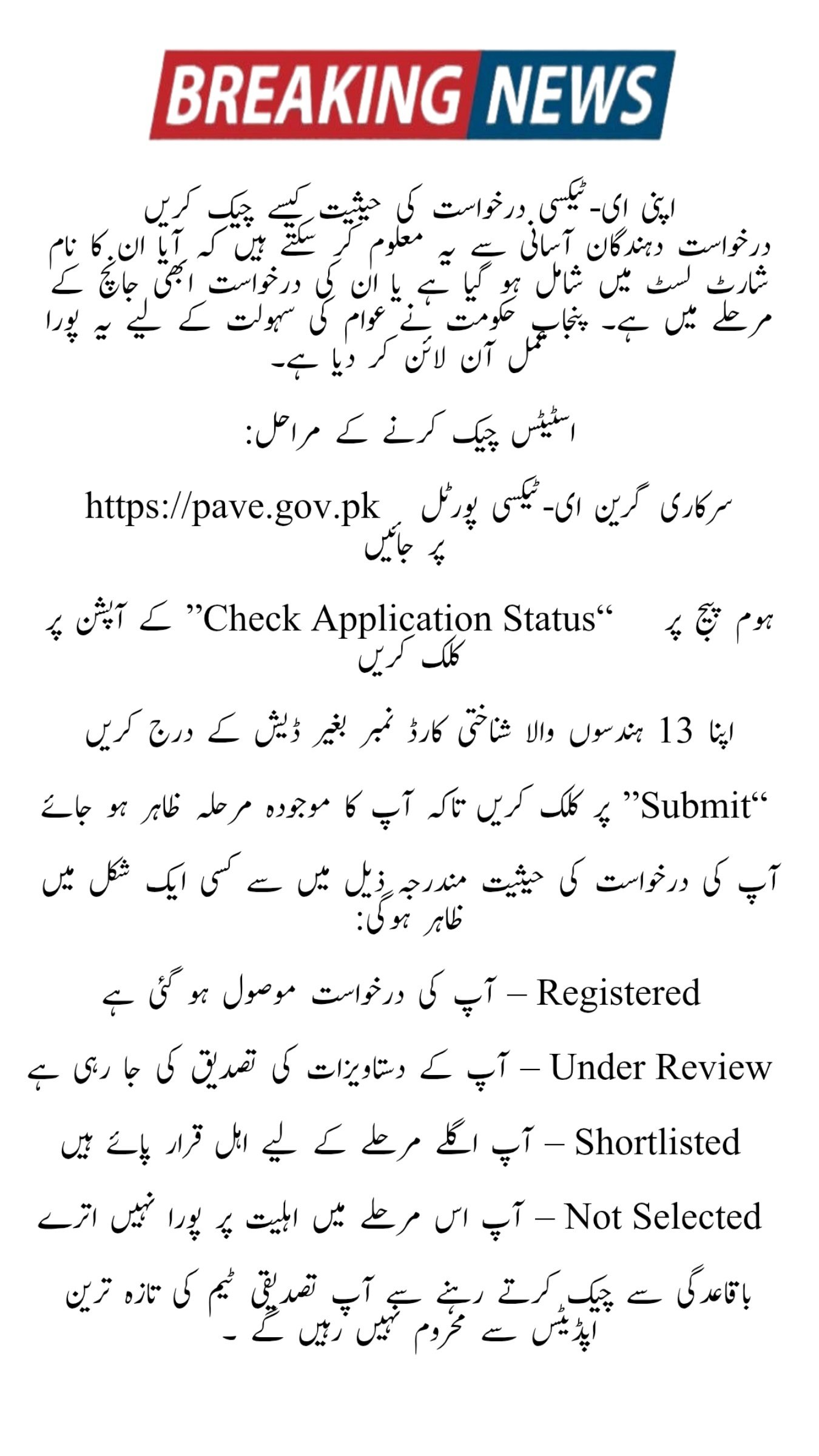 Applicants can easily check whether they have been shortlisted or are still under review. The Punjab government has made the process fully online for convenience.