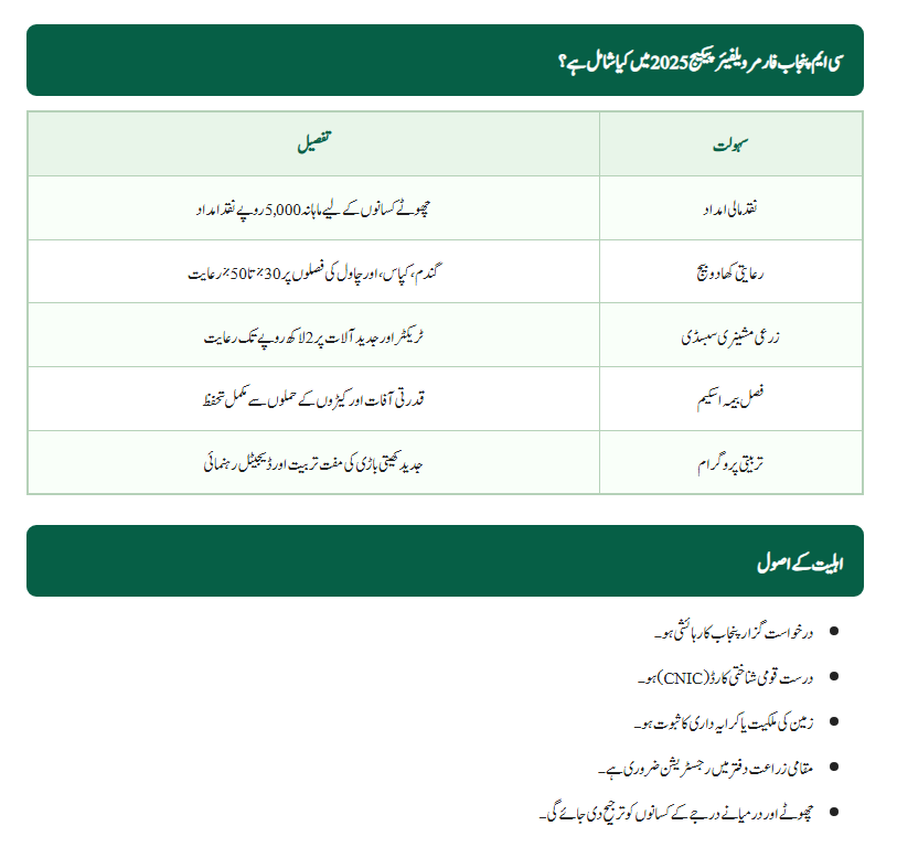 Farmers who are residents of Punjab, have a valid CNIC, and own or rent agricultural land can apply. Small and medium farmers will get priority.