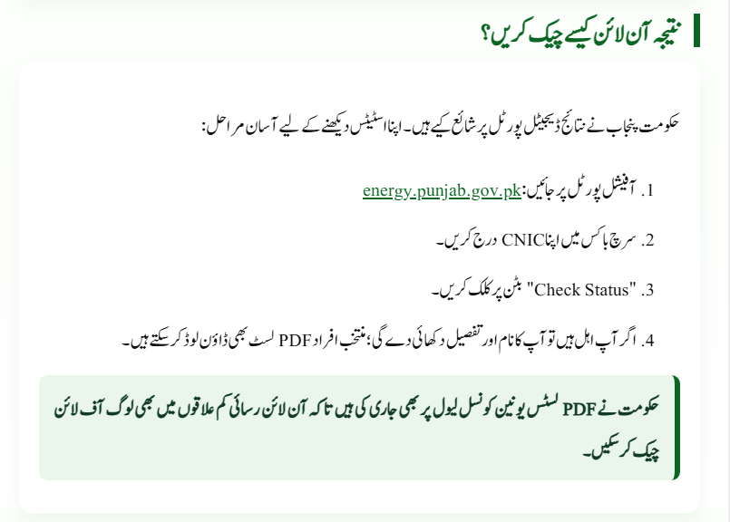 You can check your result by visiting the official website https://energy.punjab.gov.pk and entering your CNIC number.