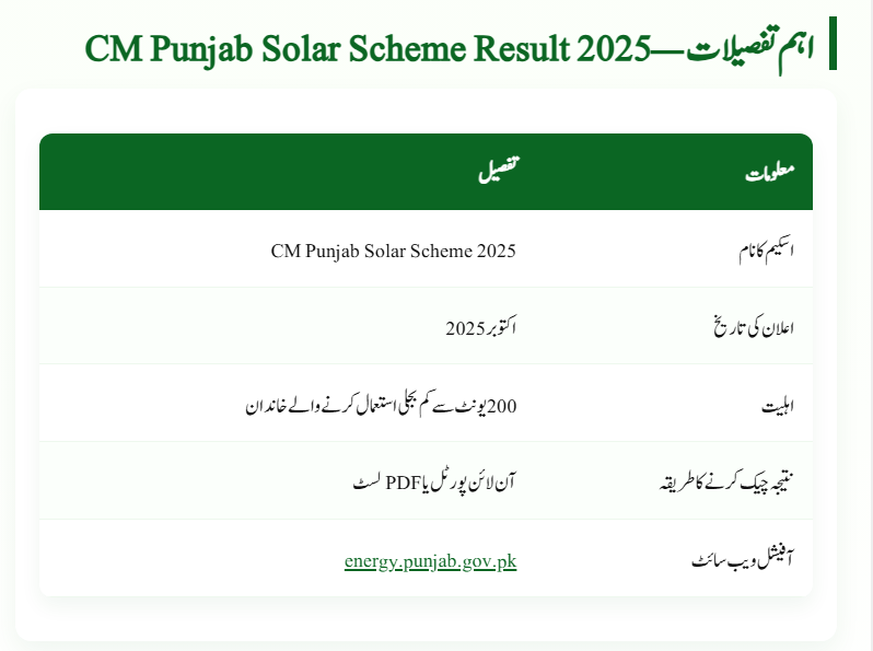 The CM Punjab Solar Scheme Result 2025 marks a major leap forward toward affordable, clean, and sustainable energy in Punjab. By offering solar systems to low-income families, the government is reducing financial pressure while promoting renewable power generation. If you’ve applied, visit the official website today, check your CNIC status, and confirm whether your home is part of this historic clean energy transformation.