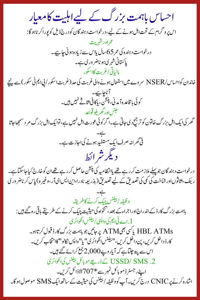 Eligibility Criteria for Ehsaas Ba Himmat Buzurg