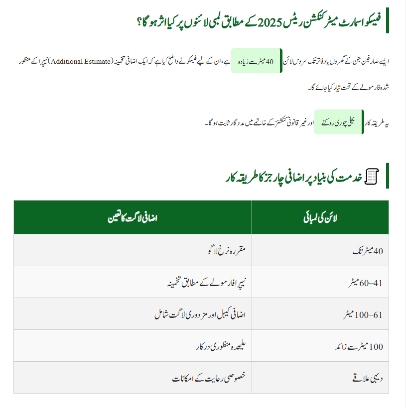 For consumers whose service lines extend beyond 40 meters, FESCO clarified that an additional cost estimate will be prepared according to the NEPRA-approved formula.