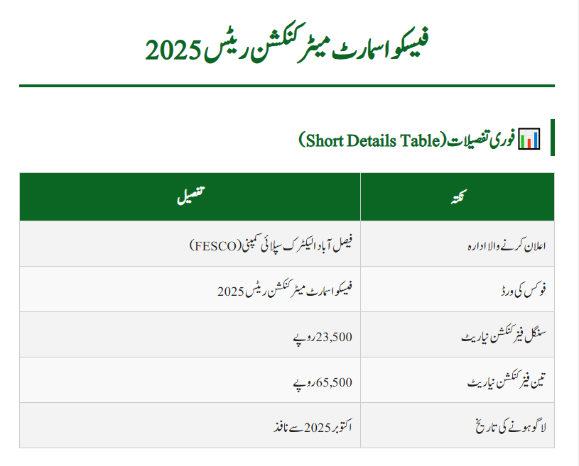 | Focus Keyword | FESCO Smart Meter Connection Rates 2025 |