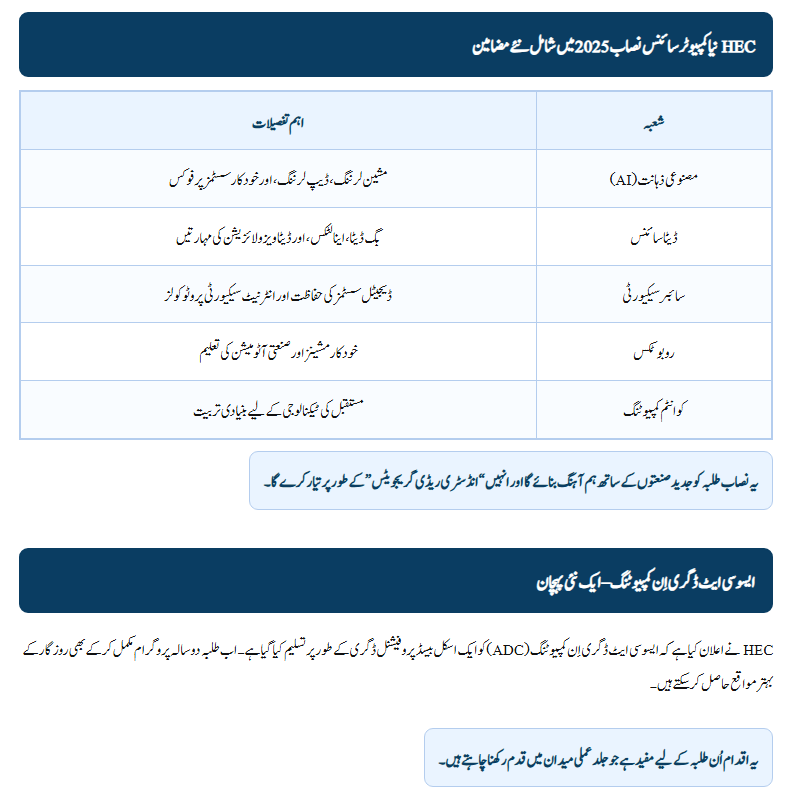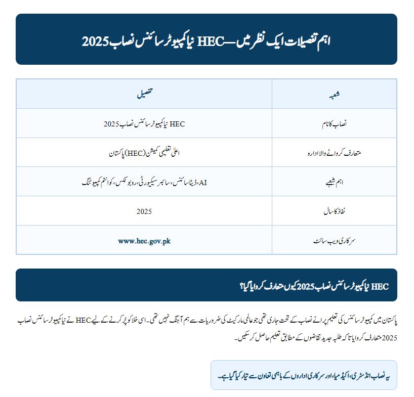 HEC New Computer Science Curriculum 2025 – A New Direction for Modern Education