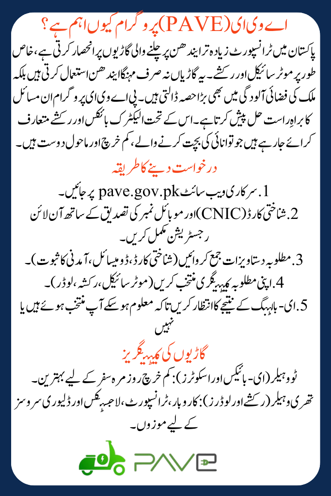 The PAVE Program is not just about providing electric bikes and rickshaws, it is about shaping the future of Pakistan’s transportation system. By adopting EVs, citizens can enjoy huge savings, better mobility, and cleaner air. With its subsidies, installment plans, and inclusivity for women and entrepreneurs, PAVE has the potential to transform both lifestyles and businesses across Pakistan.