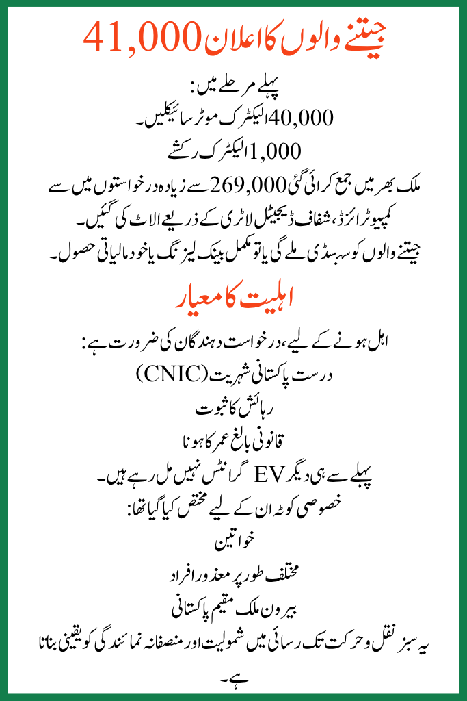 Pakistan E-Bikes Scheme 2025- 41,000 Winners Announced