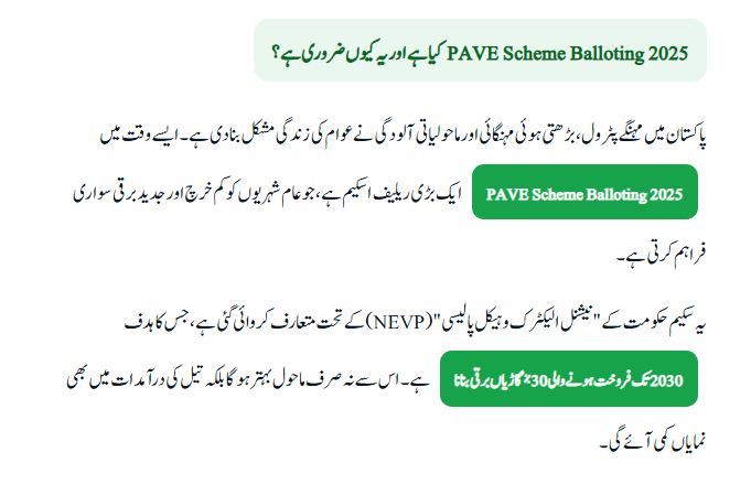 With rising fuel costs, inflation, and worsening air pollution, life has become difficult for the average Pakistani. In such conditions, the PAVE Scheme Balloting 2025 provides massive relief by making modern electric vehicles more affordable for ordinary people.