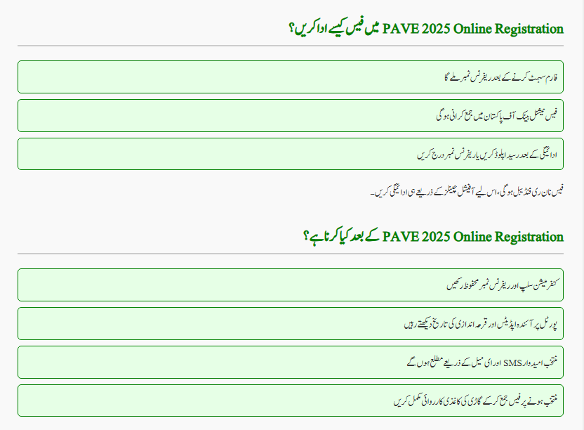 Once you submit your form, a confirmation slip or reference number will be generated. This will guide you on how to pay the required non-refundable fee. Usually, selected candidates need to pay at the National Bank of Pakistan. After payment, upload the receipt or enter the reference number on the portal for confirmation. Always keep the payment receipt safe as proof, since it will be required later for vehicle delivery.