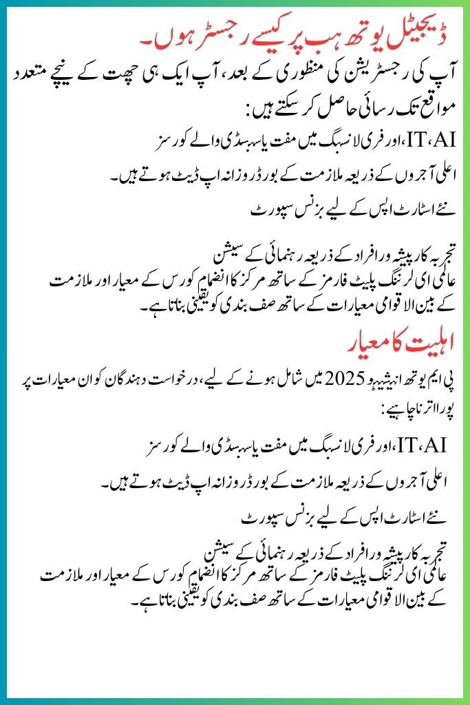 The PM Youth Initiative 2025 is a breakthrough step for Pakistan’s youth, aiming to connect education, digital skills, jobs, and entrepreneurship in one national platform — the Digital Youth Hub. It’s designed to help young people learn in-demand skills, apply for jobs, and even launch startups with government-backed support. If you want to register and benefit, here’s everything you need to know.