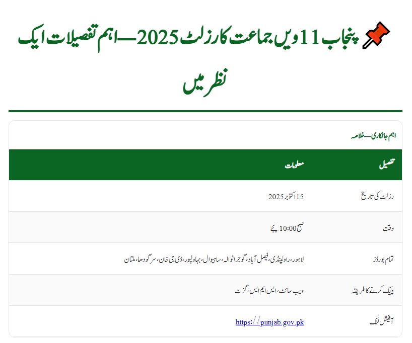 The Punjab Boards will announce the 11th Class Result 2025 on October 15, 2025, at 10:00 AM.