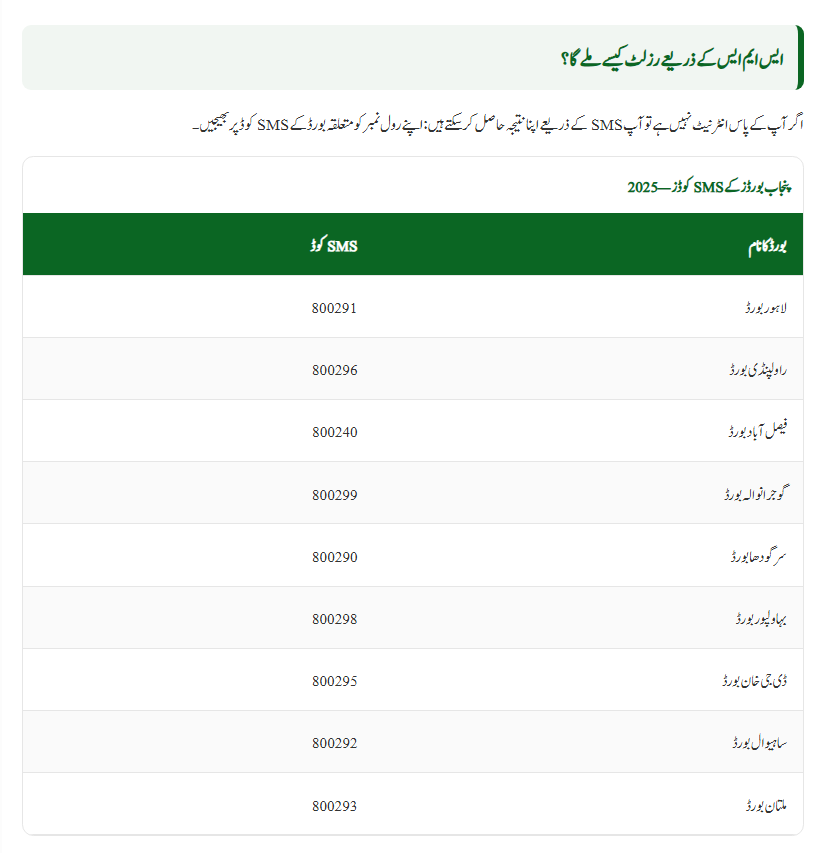If you don’t have internet access, don’t worry! You can still check your Punjab 11th Class Result 2025 through a simple SMS.