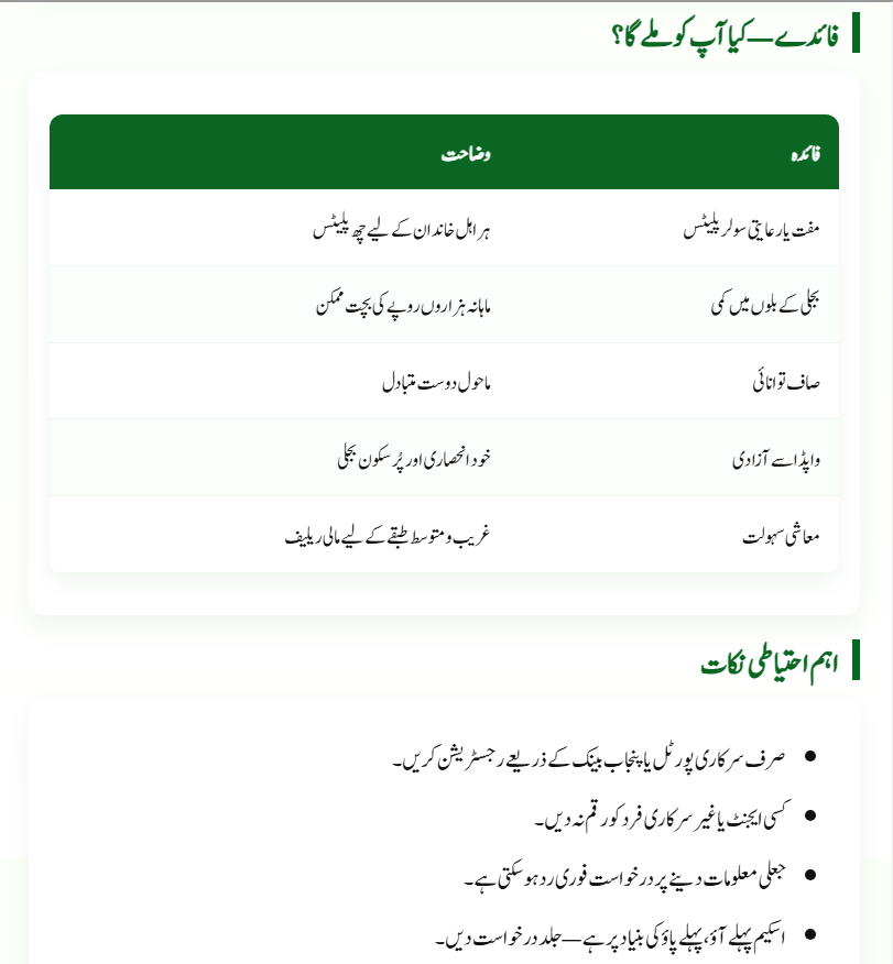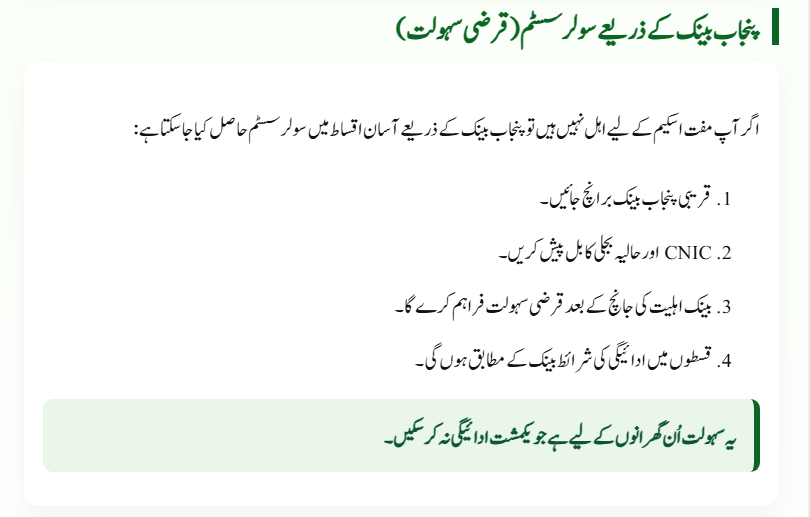 You can register through the official Punjab Government energy portal, entering your CNIC, name, contact details, and electricity bill units. - Is there a loan option for those who don’t qualify for free panels?