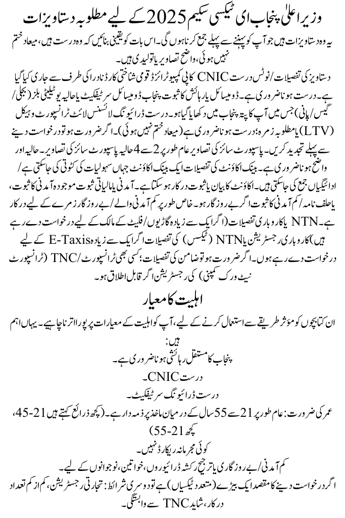 The Required Documents for CM Punjab E-Taxi Scheme 2025 is a powerful opportunity: