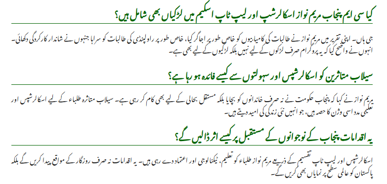 Yes. In her speech, Maryam Nawaz highlighted the achievements of female students, especially from Rawalpindi, who performed exceptionally well. She made it clear that this program is not just for boys but for girls as well.