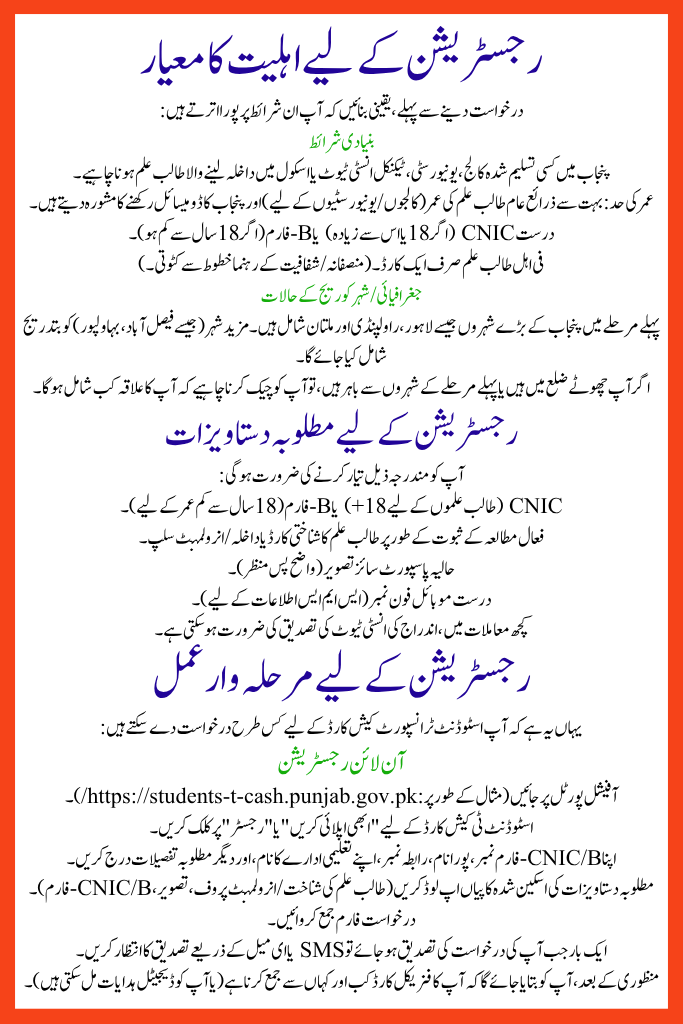 https://students-t-cash.punjab.gov.pk/). - Click on “Apply Now” or “Register” for the Student T-Cash Card.